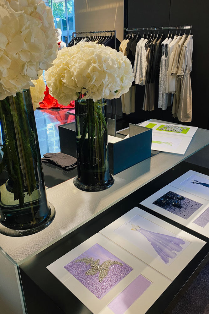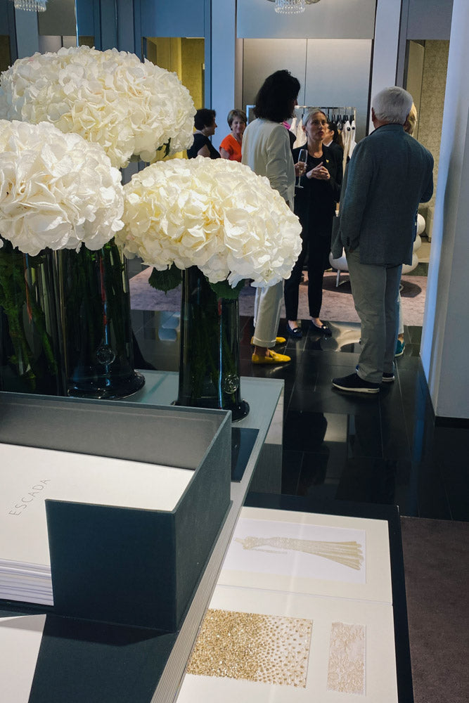 Unsere Designdirektorin Ioana De Vilmorin gibt bei einem Glas Champagner und Live-Musik Einblicke in die Entstehung der Kollektion. Die komplexen Stickereien, Applikationen und Verfahren, die in die ESCADA-Bekleidung einfließen, lassen jedes Stück einzigartig erscheinen.