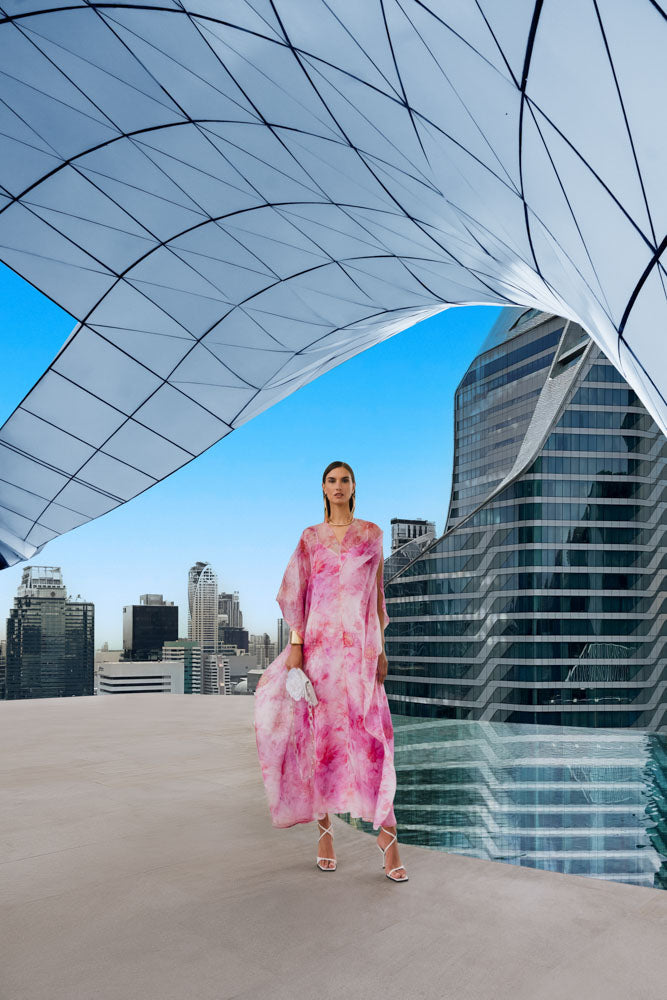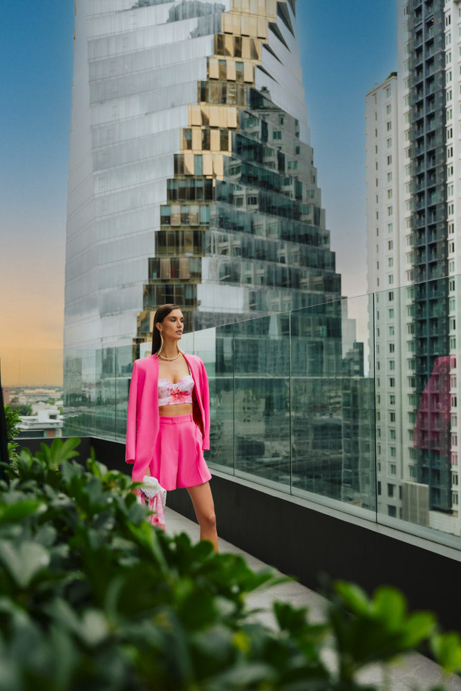 Ronja se exhibe sobre el horizonte de Bangkok para ESCADA ML. Las numerosas terrazas con impresionantes vistas del horizonte de la ciudad ofrecen un lujoso refugio del bullicio de Bangkok.