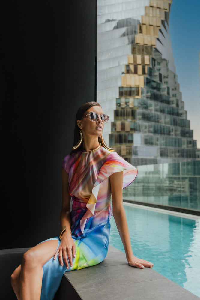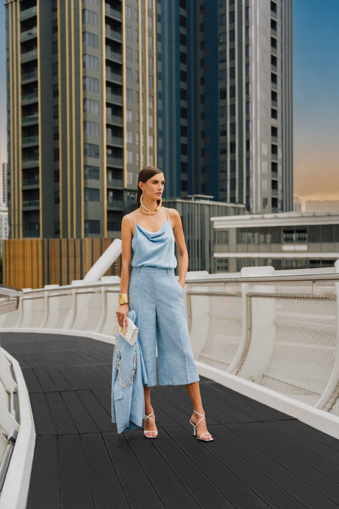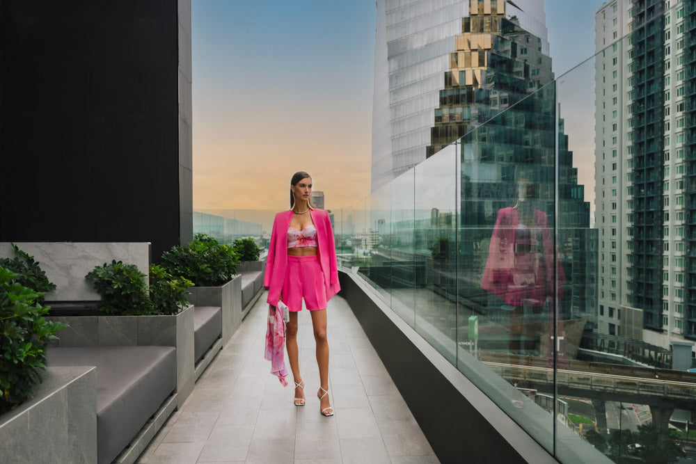 Ronja s'affiche au-dessus des toits de Bangkok pour ESCADA ML. Les nombreuses terrasses panoramiques offrant une vue imprenable sur les toits de la ville offrent un refuge luxueux loin de l'agitation de Bangkok. Même dans une si grande métropole, il est temps de se détendre, de prendre un verre et d'être absolument magnifique dans la nouvelle collection ESCADA Printemps-Été. La collection se concentre sur les motifs fleuris, les couleurs pastel et les tissus naturels pour la femme moderne qui souhaite profiter de la chaleur et du dynamisme de la saison. Une sélection qui stimulera tous vos sens.