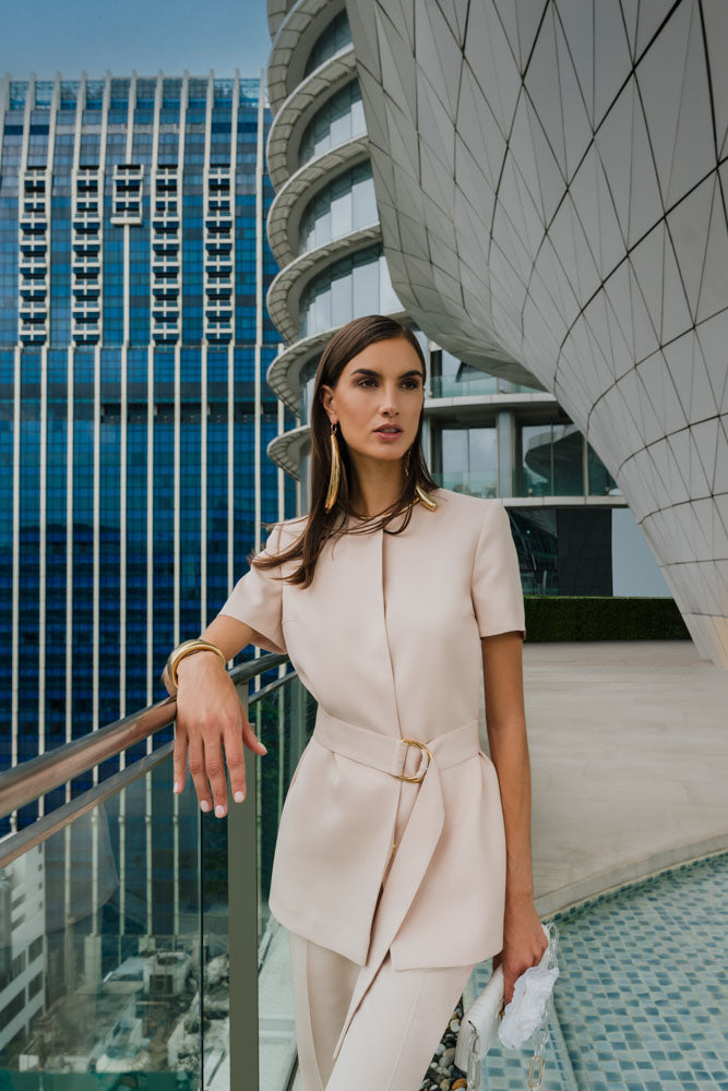 Lors de récentes campagnes, notre femme ESCADA a voyagé et vu la splendeur de plusieurs décors naturels. Nous pensons qu'il était crucial de présenter à nouveau ESCADA dans une ville animée pour l'été 2024.
