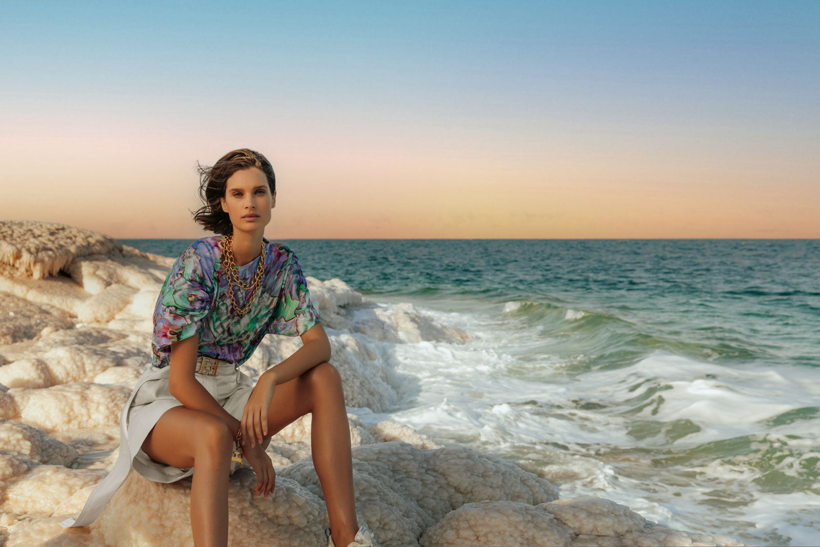 The ESCADA Sport imagery immersed us in the incredible landscape formations of the Dead Sea. The world-famous salt reefs are surreal and breathtakingly beautiful, just like the ESCADA SPORT collection.