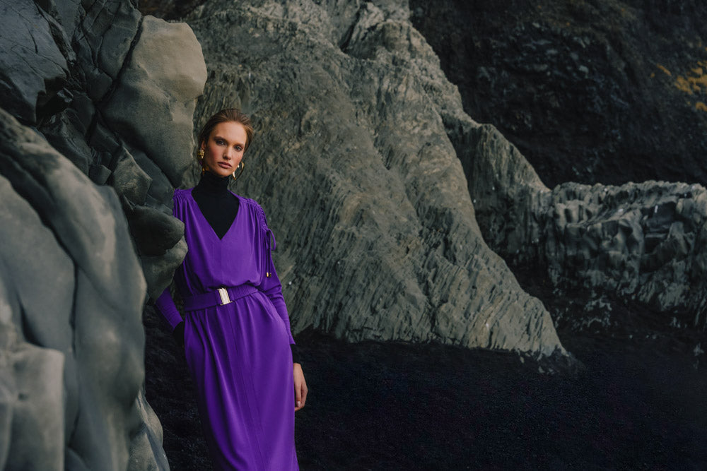毎回、コレクションを魔法のような環境で演出することは、私たちにとって至上の喜びです。ESCADAのDNAであるカラーが、アイスランドの自然と完璧に融合し、美しく花開きます。キャンペーンのヒロイン、KingaはまさにESCADAを体現する存在。クラシックでフェミニン、そして魔法のように魅力的で、観る者をその世界へ引き込みます。
