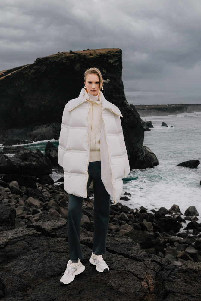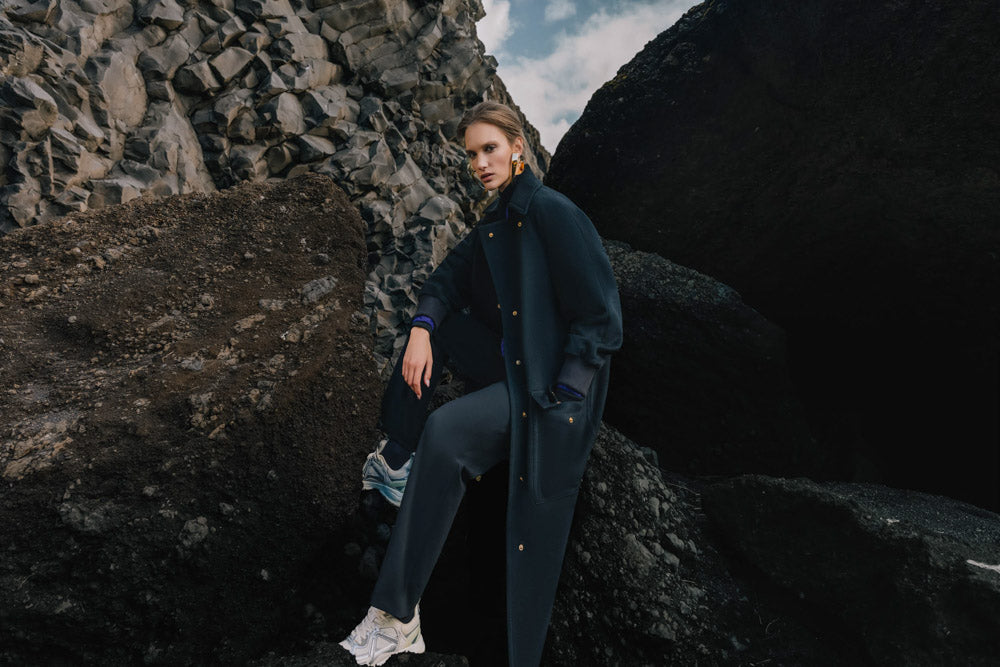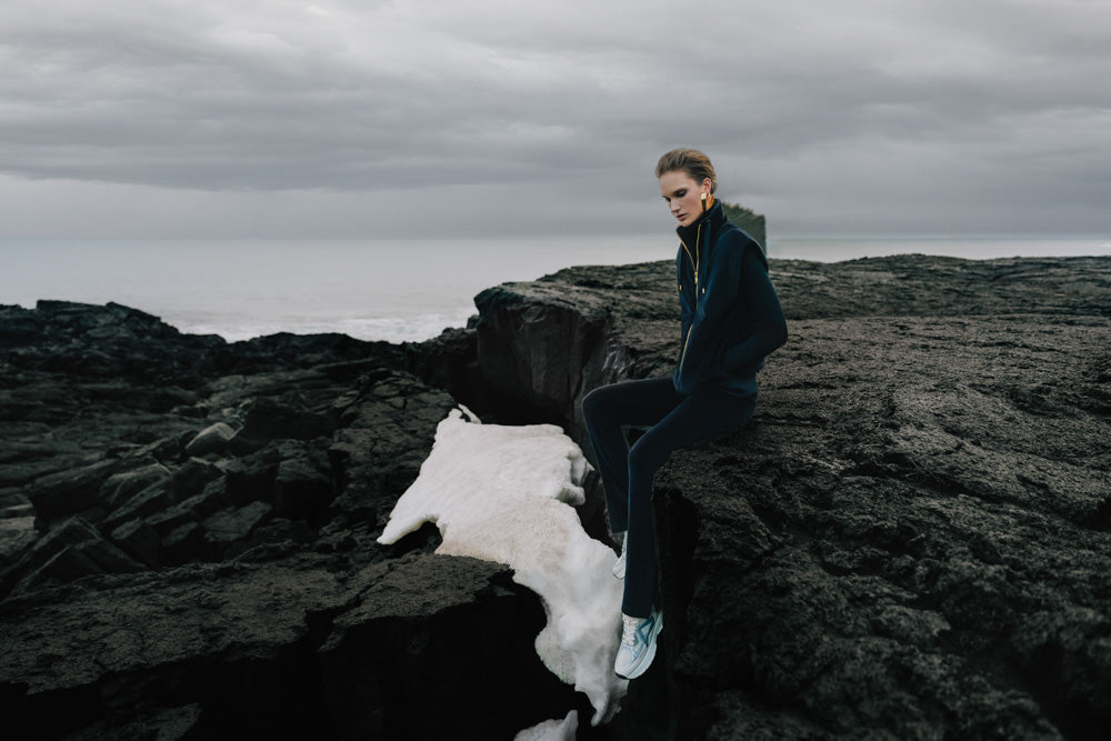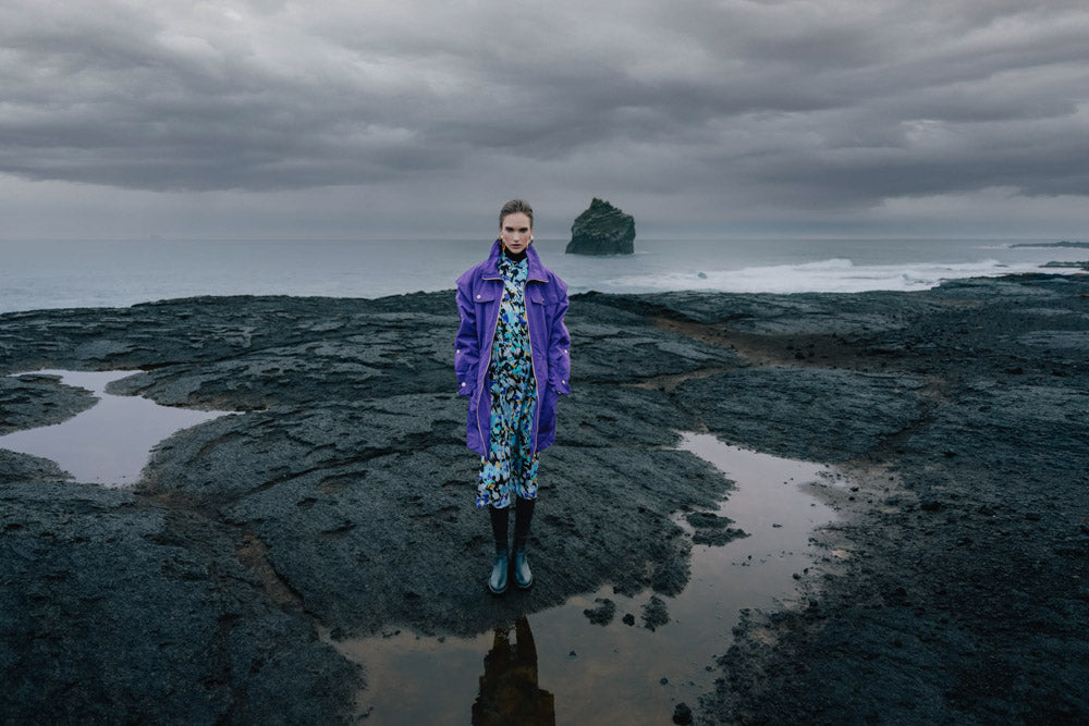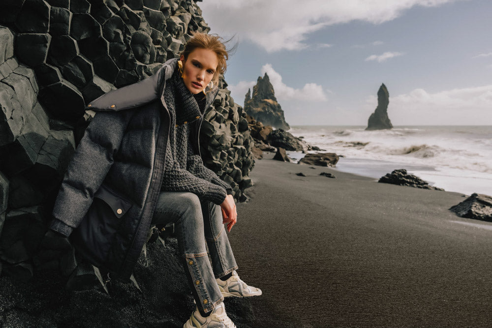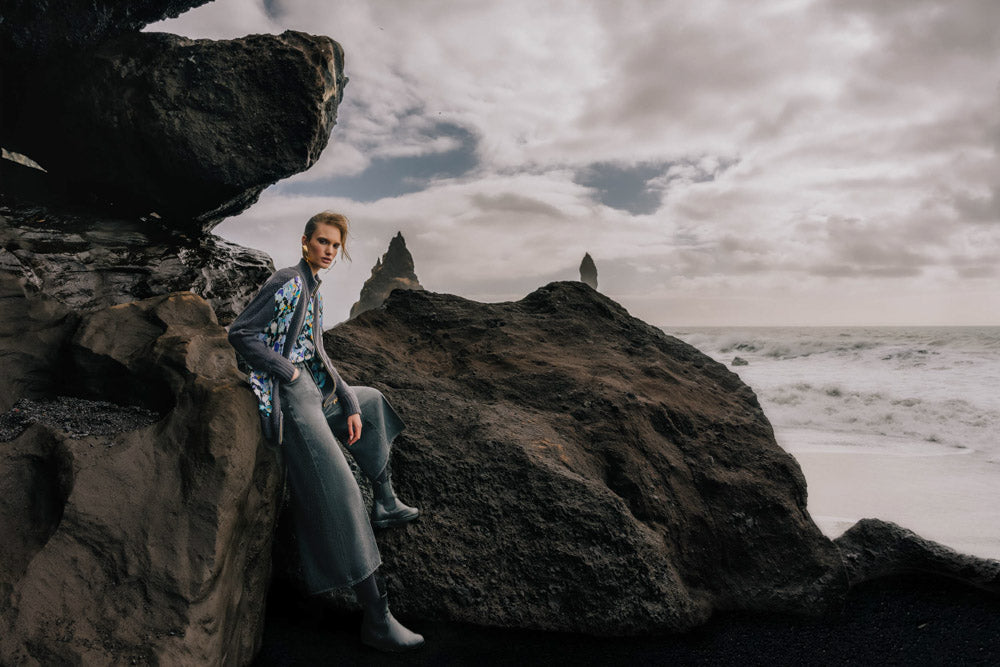 一方、ESCADA Sportは、アイスランド特有の岩の造形や幻想的な表面の中に映し出されます。自然の持つ力と美しさに満ちたロケーションで、コレクションの真価が際立ちます。