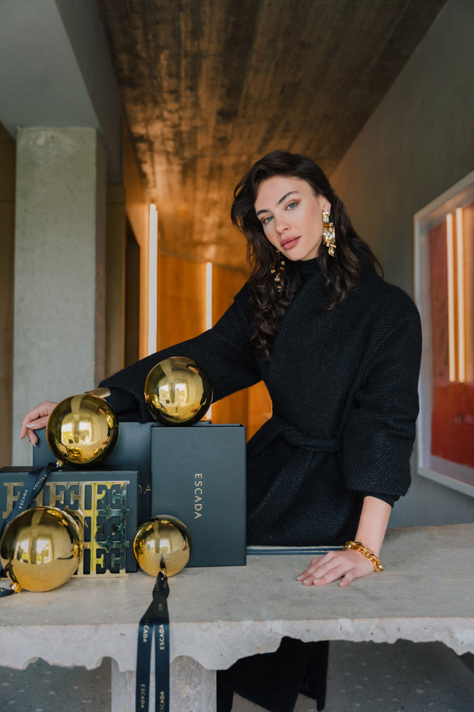 ESCADAのコレクションもまた、唯一無二の存在です。クリーム色やゴールドのホリデーブロケード素材、華やかなフェザートップ、快適なウールコート、洗練されたデザイン、そしてESCADAならではのディテールが、ホリデーコレクションをさらに魅力的にします。最高品質の生地を使ったアイテムは、その卓越したクラフツマンシップで新年を迎えた後も愛される存在となることでしょう。ワードローブの新たな定番として、きっとお気に入りの一着になるはずです。