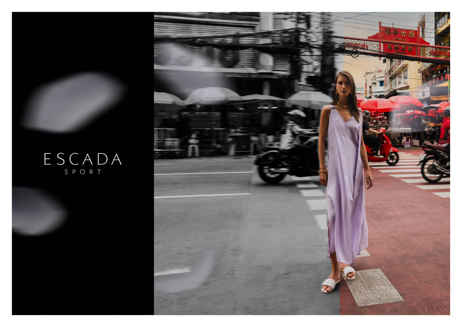 Ronja discovers the bustling Chinatown of Bangkok for ESCADA Sport. Endless streets, neon signs, and the joyful buzz and bustle on the streets are all wonderful to explore. There is something fresh to view at every turn, something intriguing to observe, and it is simply enjoyable to experience this variet y in the new ESCADA SPORT collection.