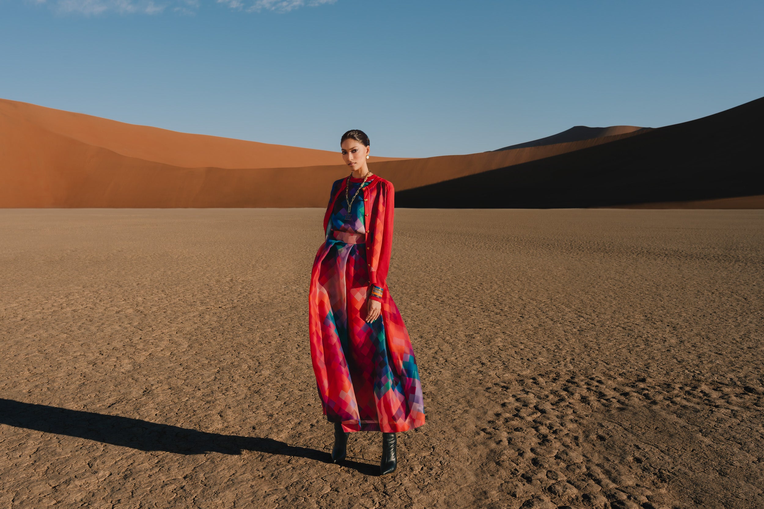 This campaign is a testament to ESCADA’s commitment to presenting its lines in the most enchanting light possible. Join us on a journey through the new collection, where vibrant hues, elegant silhouettes, and captivating shapes await, against the breathtaking backdrop of Namibia’s desert landscape.